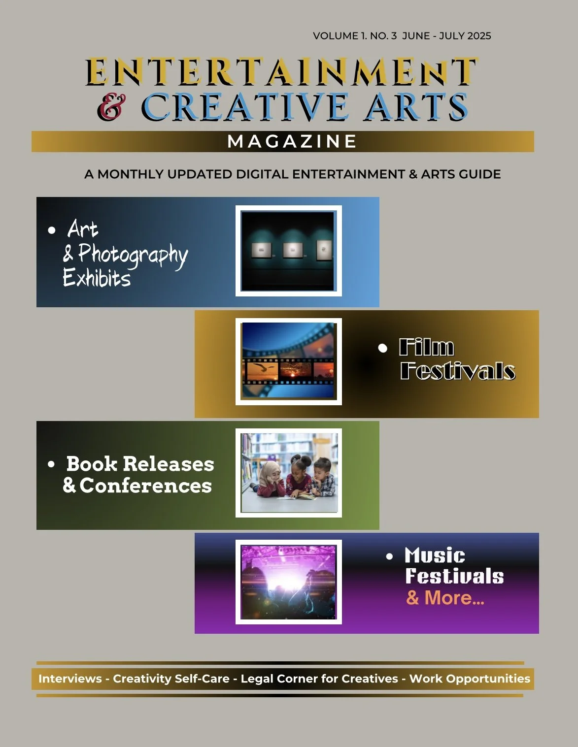 Our monthly digital magazine is now LIVE! Entertainment & Creative Arts Magazine is intended to be a resource guide for creatives and art lovers. It gives information about festivals (film & music), art and photography exhibits, book releases and writers’ conferences, theater & dance productions, legal discussion of cases or issues that creatives need to consider, methods and tips for focusing before starting the creative process, interviews with industry success stories, and work opportunities. Easily accessible to the reader with colorful designs and interactive links to sections throughout the magazine and to external 3rd parties. Click below on the image to see a preview of each issue and to buy an individual issue.. For monthly or yearly subscriptions click here: https://aappiahdesigns.gumroad.com.